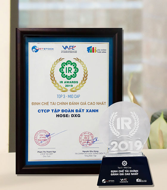 Trải qua nhiều vòng khảo sát, đánh giá, thẩm định và bình chọn, Tập đoàn Đất Xanh với mã DXG xuất sắc đứng ở vị trí thứ 2 trong Top 3 doanh nghiệp niêm yết có hoạt động IR được các Định chế tài chính đánh giá cao nhất, thuộc nhóm Mid Cap. Đây là năm thứ 2 liên tiếp Đất Xanh được vinh danh tại giải thưởng này, điều này tiếp tục khẳng định vị thế của một doanh nghiệp đi đầu trong hoạt động IR, đạt chuẩn công bố thông tin và có sự tăng trưởng ấn tượng.